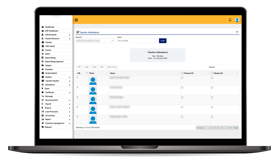 Effortless Administration: Envision a seamless admission process, automated attendance tracking, and centralized student record management. Our system simplifies administrative tasks, allowing your staff to focus on delivering a superior education experience.